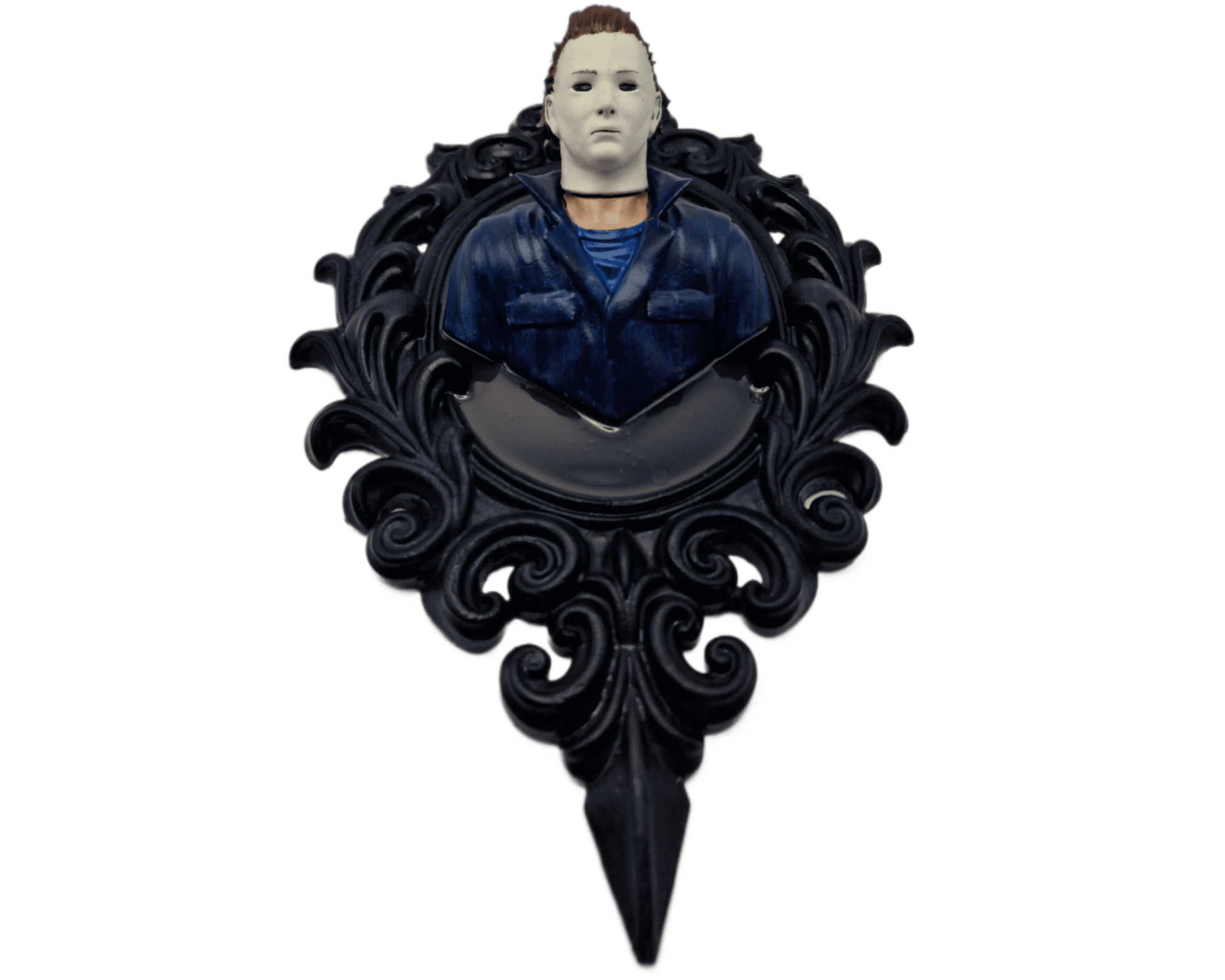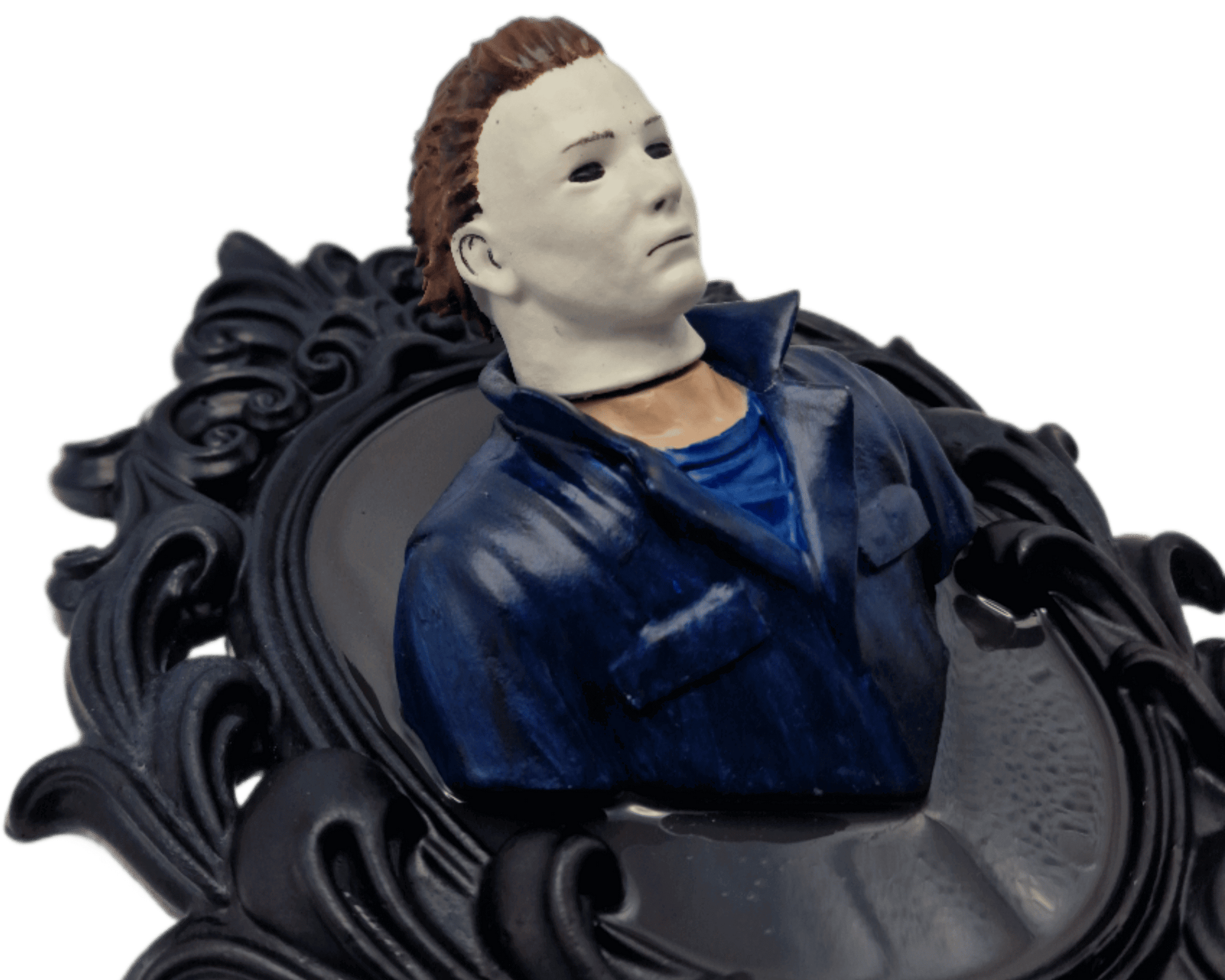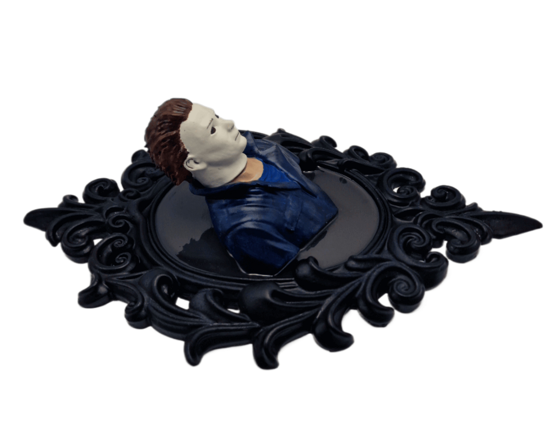 Lleva el terror clásico y la tensión oscura a tu hogar con este cuadro de marco gótico que presenta un asesino enmascarado de estilo icónico. La figura está creada en resina y pintada a mano, capturando cada línea de la máscara, la mirada inquietante y la presencia silenciosa sobre un fondo negro profundo, creando un efecto dramático y envolvente.